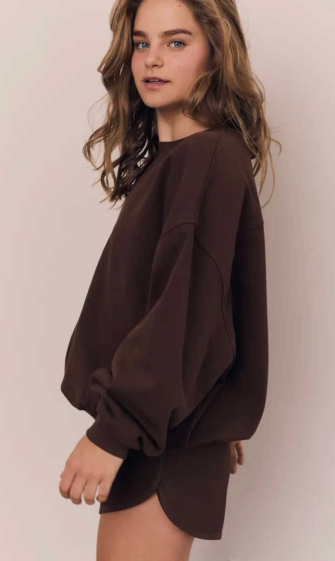 Made from soft terry with a fleece like feel, it's cozy enough for chilly days and cool enough to stand out in the basics crowd.