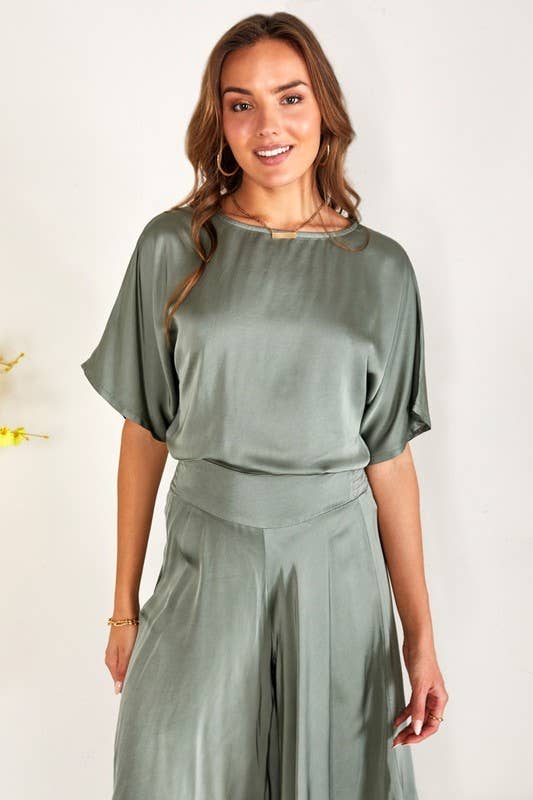 A TRULY PREMIUM PIECE, THIS SOLID ROUND NECK DOLMAN SHORT SLEEVE SILKY TOP IS CRAFTED FROM THE MOST LUXURIOUS, SILKY FABRIC FOR AN ELEGANT LOOK. ITS ROUND NECK AND DOLMAN SHORT SLEEVES EVOKE SOPHISTICATION AND EXCLUSIVITY - SURE TO TURN HEADS, WHEREVER YOU MAY GO.